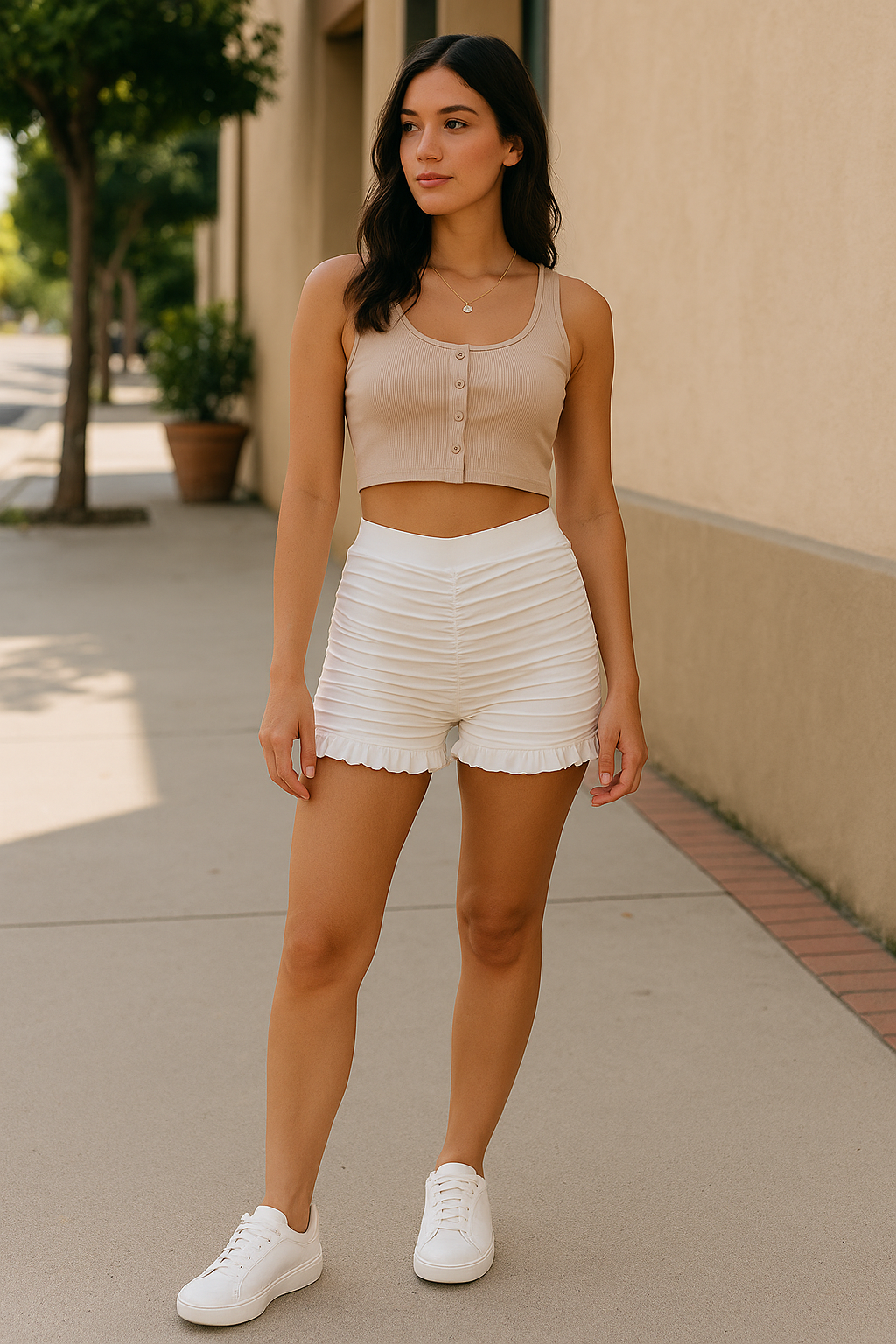 Elevate your summer style with the Aeraluxe Streamline Ruchers, designed for comfort, charm, and a touch of playful elegance. These high-waisted shorts feature a flattering ruched front that elongates the legs, while the delicate frill hem adds a feminine twist. Crafted from soft, breathable fabric, they’re perfect for sunny strolls, weekend getaways, or casual coffee runs. Pair them with your favorite crop top or breezy blouse for an effortlessly chic look.